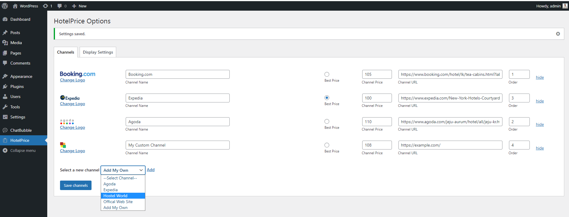 Click on the best price radio button to mark the channel as best rate. It will show top of the widget.